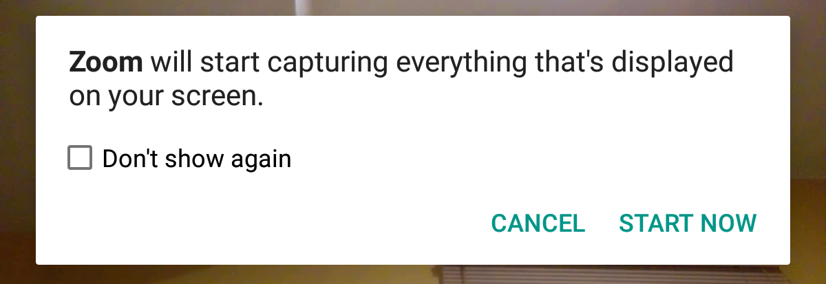 3a. If you select Screen, you'll see a prompt asking for permission to begin streaming your phone screen. Tap "Start Now" to allow it.