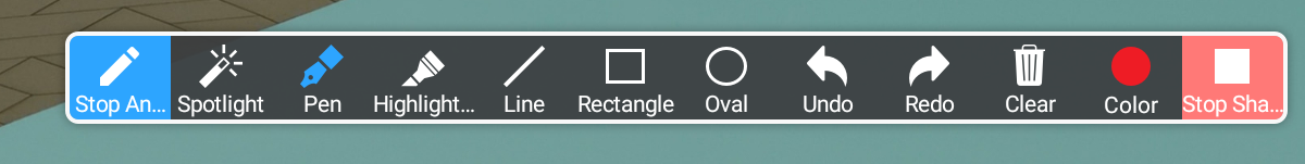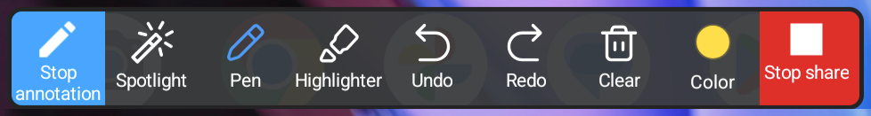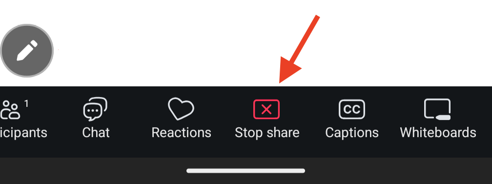 1. To stop share, close the Annotation tools panel and tap on the "Stop Share" button at the bottom of the screen.