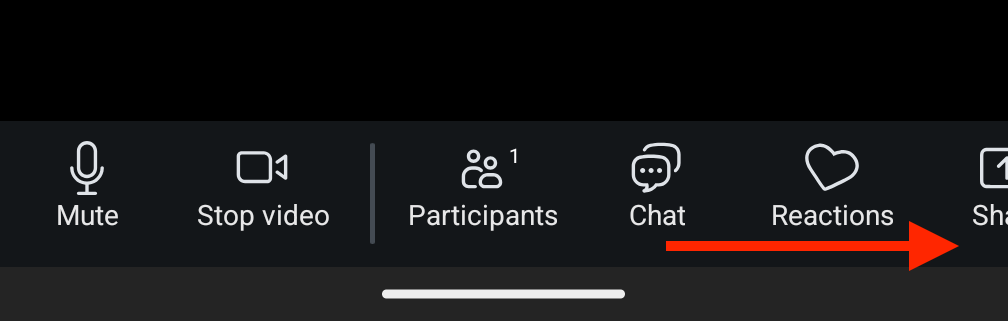 1. Click anywhere on the video app window to make a menu appear at the bottom, and then click on the "Share Screen" icon.