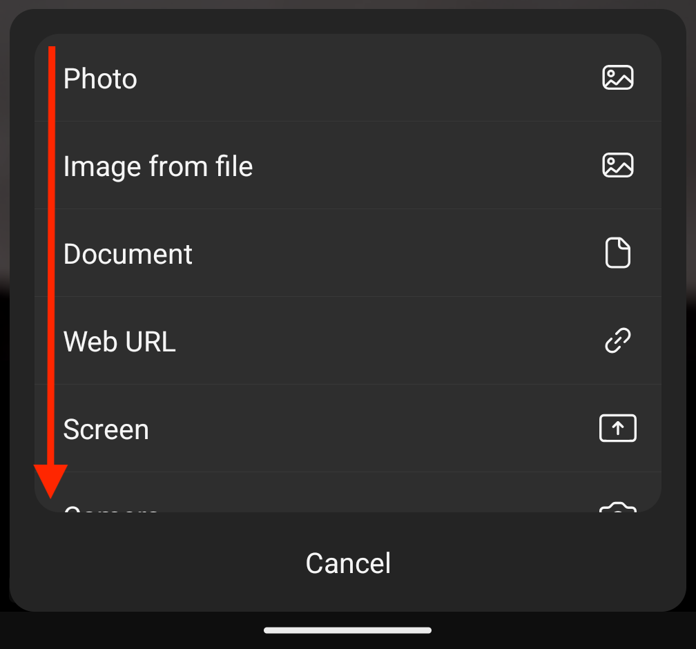 2. Tap to select the content type you would like to share. Depending on the size of your phone, you may need to scroll to view the whole list:
