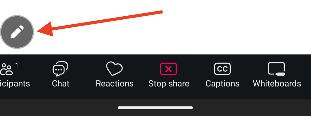 3b. If you selected Whiteboard, the screen will go blank and your video feeds will disappear. Tap on the pencil icon in the lower left hand corner to access annotation tools.