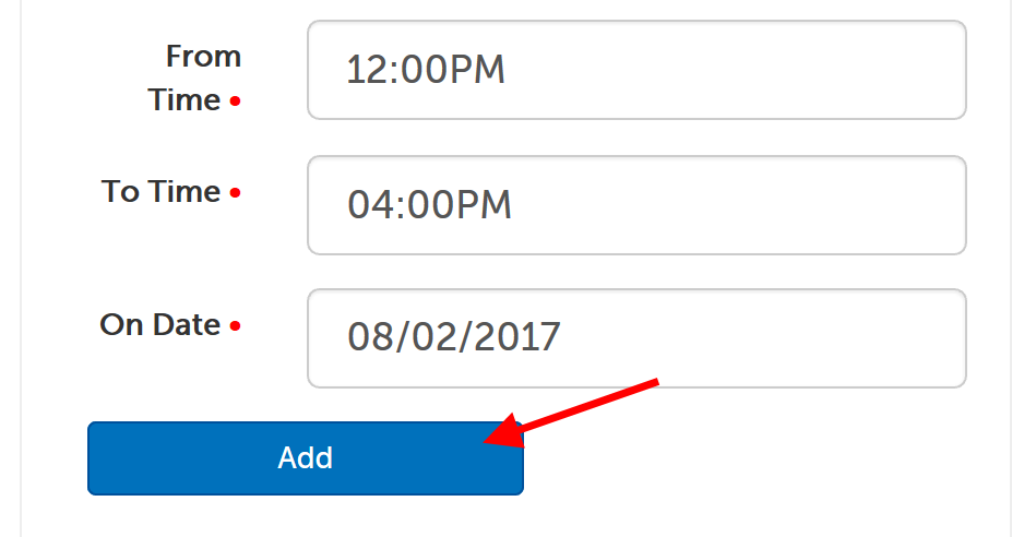 4. Click on the "From Time" field to have the timepick appear. Click a starting hour and then select minute value, in your account's time zone. Click "AM" or "PM" to indicate which is applicable.