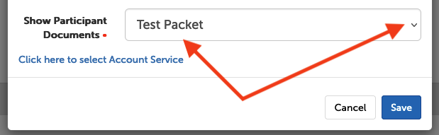 3a. To set the default packet assigned to participants: Scroll to the option "Participant Document Default" and click the drop down to select your default. The change will save automatically.