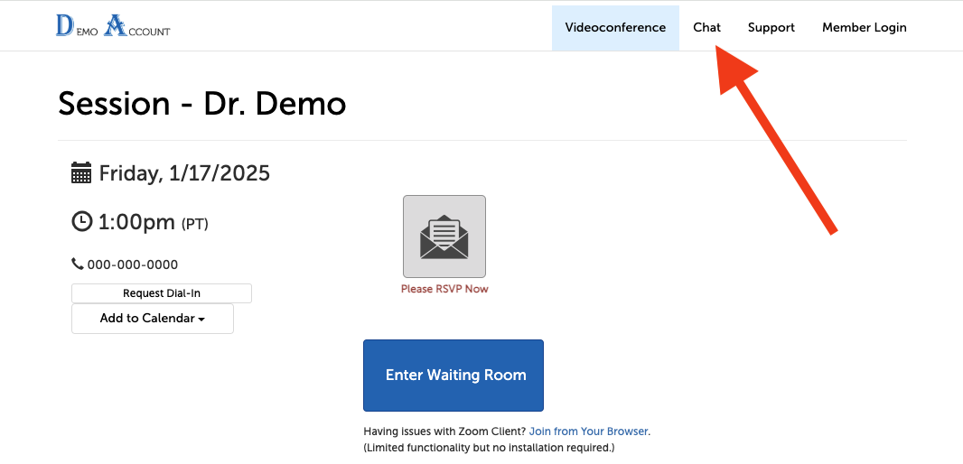 2. If you only have access to chat with your provider, a chat will open with them, and you can type your message and click "Send":