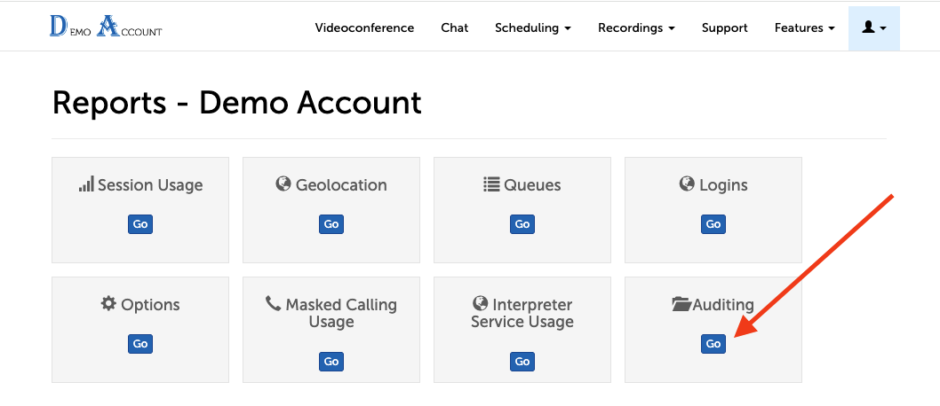 2. From the Reports home, select Auditing.